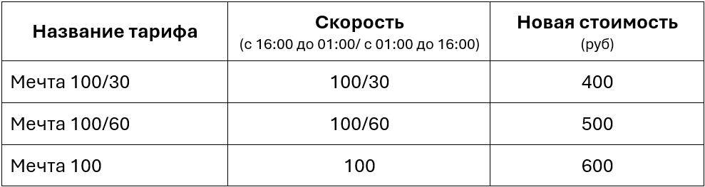 4. Текущие тарифы, подключенные у абонентов, будут переведены на новые тарифы после 10 февраля 2026 года по окончании действующего расчётного периода согласно таблице